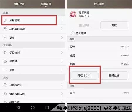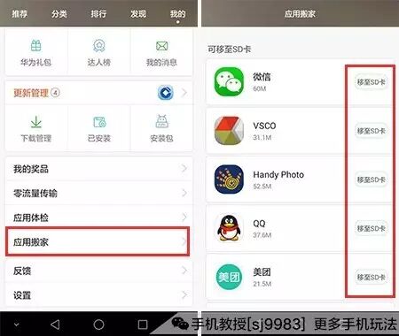 除了以上的2个基本方法,现在很多手机也自带应用搬家功能,可以自动管理应用程序,一目了然,一键转移到SD卡或者手机。