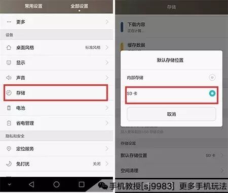 一般手机默认安装到机身存储,可以通过设置,让照片、软件等都存储到SD内存卡。这种方法在可支持内存扩展的手机上基本可以找到。