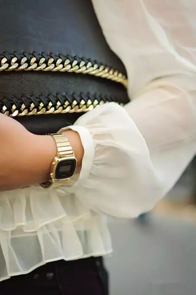 你盒子里的首饰都能成为这只电子表的好朋友,不管细链或铆钉、还是金属和水钻,都能完美融合在一起,百搭程度让你想不到!不信?来看咯~