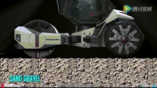 前轮安装了路面分析感应器,针对不同软硬度的路面居然可以自动变化引导轮的表面花纹,从而实现不同的效果。