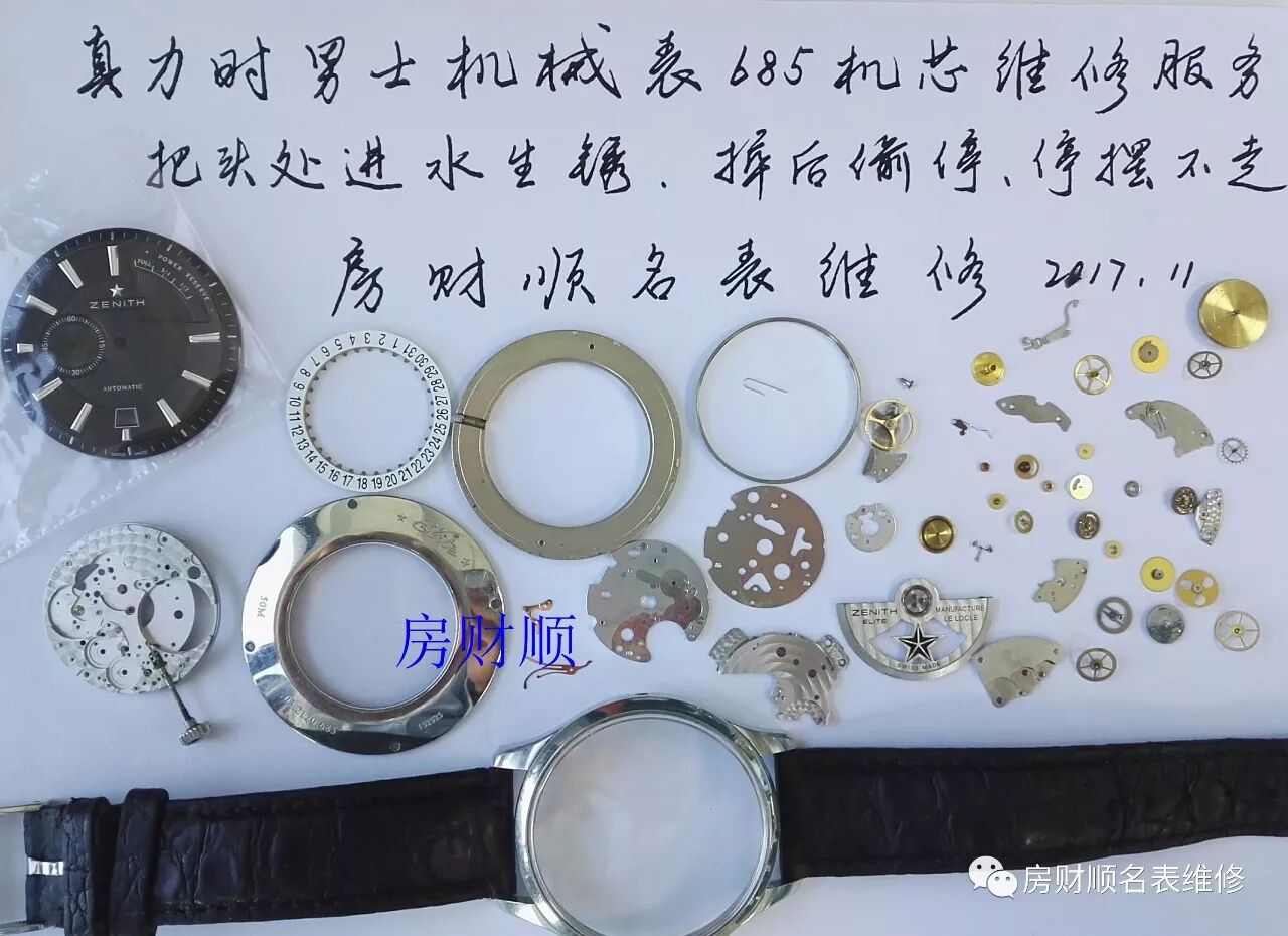 真力时动力显示两针半自动机械表685机芯维修服务。手表摔过后顾客发现偷停,竟然自己拧开后盖螺丝给手表“加油”!于是手表彻底停摆不走!当地师傅以“没有零配件”为由拒修!关键顾客自己动过!!维修时我发现发条盒满是黑油,摆轮游丝也被油粘连在一起差点报废!把杆把库进水严重锈在一起,自动过轮还变形,自动陀摔得间隙还大!我主动告知顾客只能“死马当作活马医”!最终功夫不负有心人~~我修好了