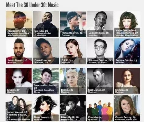 “全球30岁以下最具潜力30名杰出音乐人”排行榜