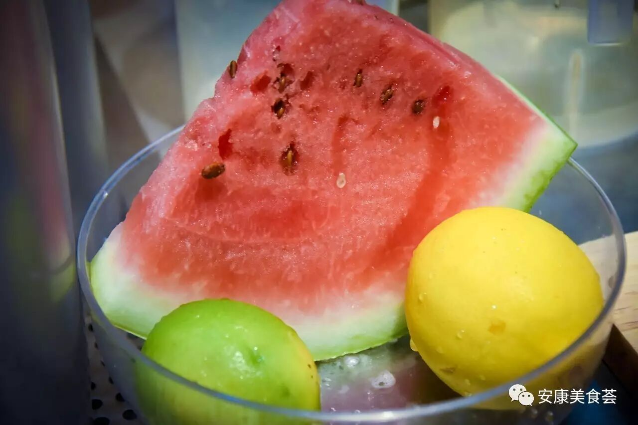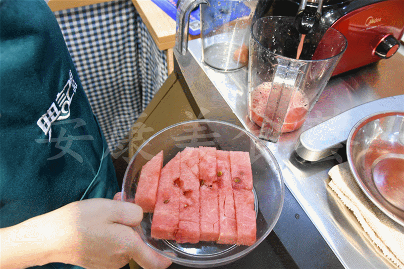 甜美西瓜汁新鲜出炉。但是这并不是这杯饮品的最终形态~