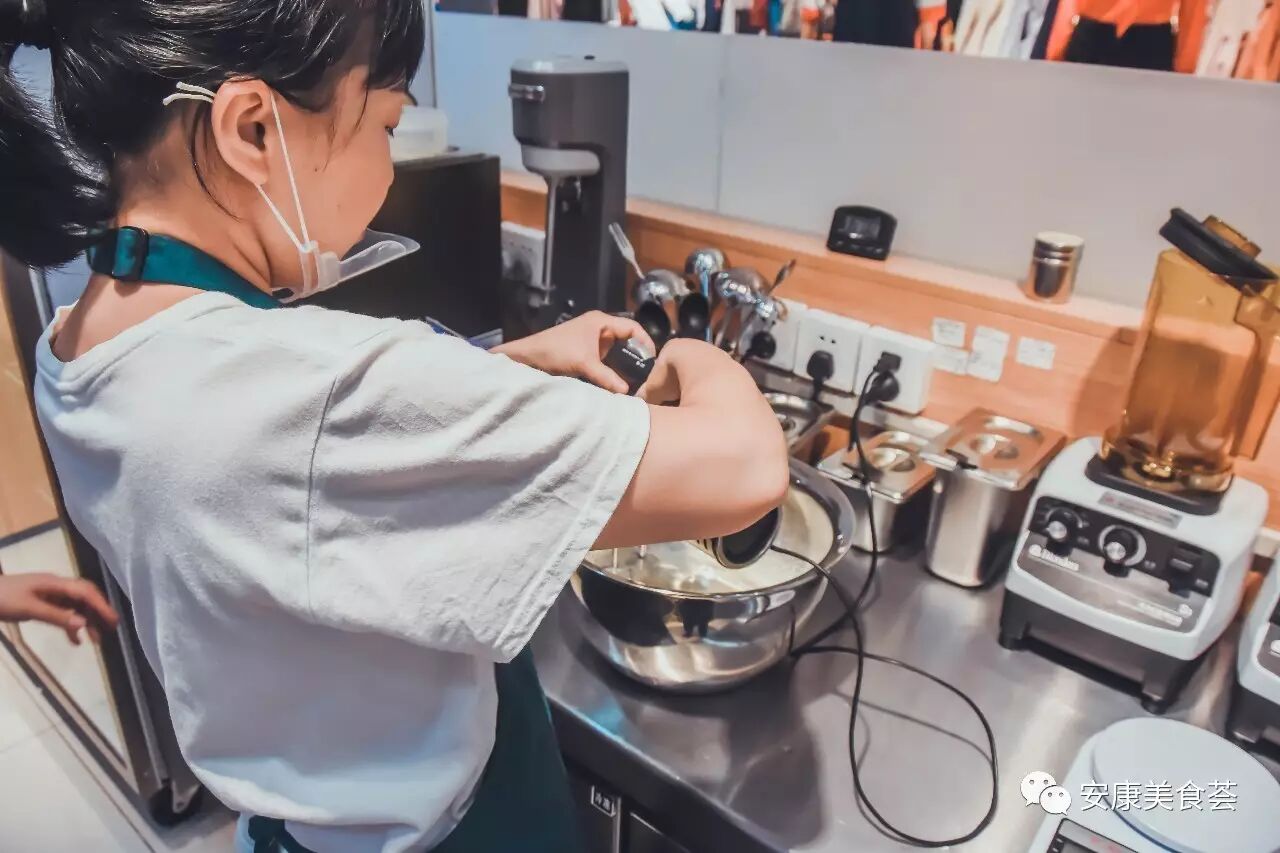 透明的操作间。在等待西瓜芒果汁的同时可以清楚的看见潘姐正在制作的一个过程。口罩手套全副武装。看起来就很安心~