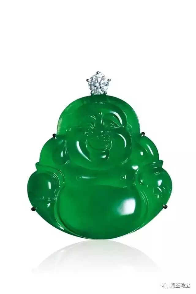 缅甸天然翡翠「弥勒佛」配钻石挂坠