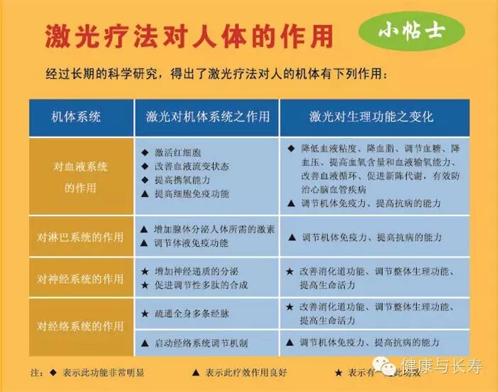 激光技术,被视为20世纪四大发明之一(激光、半导体、原子能和计算机)。应用弱激光作用于生物组织,不会造成生物组织的损伤,并良性刺激机体产生一系列光化反应和生物效应,从而达到治疗和保健的目的,医学上称之为“弱激光疗法”。