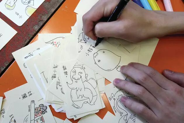 他自言是將從前讀中文和文學的知識、對文字的敏感性應用在畫畫上,「你給我字詞,我就會立刻聯想到有趣的同音字,再用搞笑的方式重新演繹。」