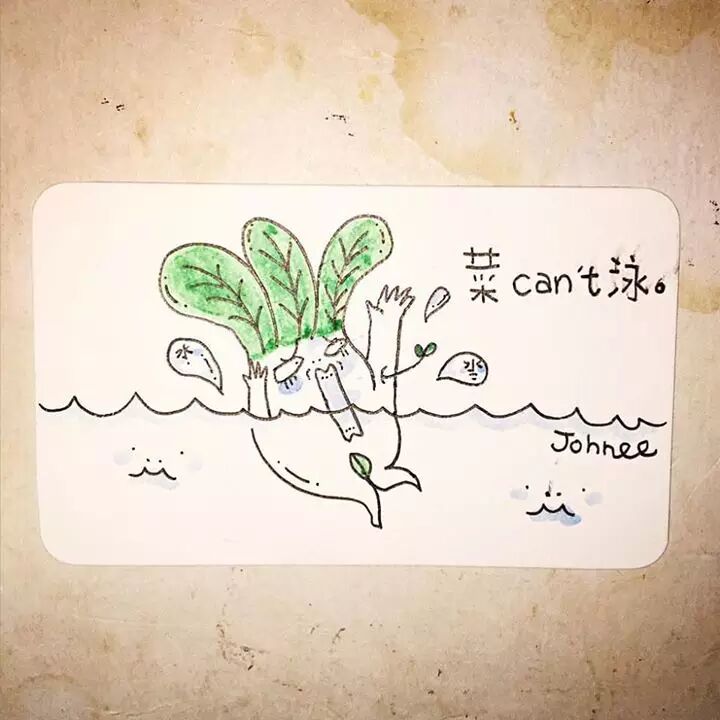 菜唔识游水,菜can't游泳,所以系菜can't泳