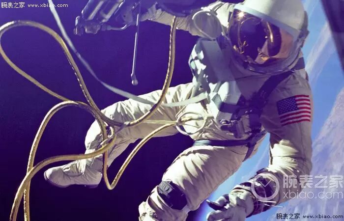注意,宇航员太空服外,左手手腕上,就是欧米茄超霸手动登月表。