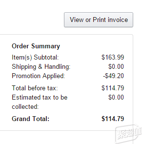 黑五前夕据介绍有额外八折优惠码,售价208折后144.6,然而一连几天盯着美亚试了很多次都没办法使用优惠码,,只能等看是否到黑五当天有更低的折扣。黑五前一天,居然人品大爆发,美亚标价从208降到了163.99,更嗨的是新的七折码也可以用再次打了七折,总价114.99,比聚超值推荐价格还低,果断下手,错过不再有。