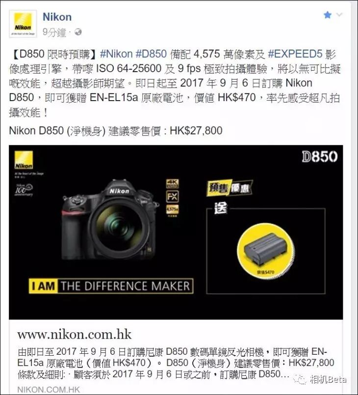 【尼康D850香港要价27800元(附中文版D850用户手册)】香港报价也出来了,要价27800港元,约折合人民币23000元。另外分享一下中文版D850用户手册,大家先过过干瘾吧。下载用户手册点击“阅读原文”访问官网下载地址,亦可以复制一下地址下载:http://download.nikonimglib.com/archive3/6a1pN00H8D2s03PiDzV19r4XQY65/D850UM_SG(Tc)01.pdf