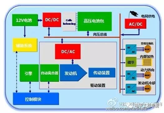 图二这张示意图具体显示了混动汽车内部的供电情况。服务电池提供12V标准电压用于仪表盘、制动装置和照明。动力电池提供的200-800V高压电用于牵引系统。动力电池可由混合控制系统和(或)电网经AC-DC转换器进行充电,而12V电池是由动力电池由经DC-DC转换器进行充电。因此,电动汽车的配置可以使用双向或单向系统。转换器的可靠性是关键因素,因为一个小错误就会导致12V服务电池的放电,直接导致整个电子系统的损失。
