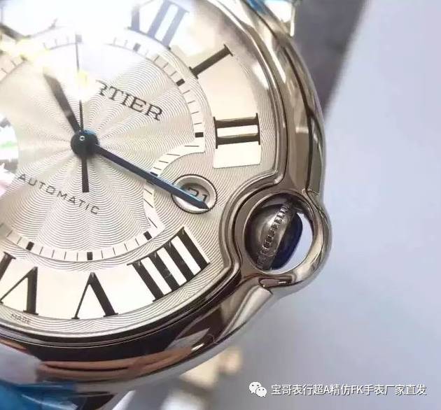 V6厂把蓝宝石的材质和工艺相对之前的版本提升到了前所未有的高度。型号也比较齐全,表盘直径分别为28mm、33mm、36mm、38mm 、(男款)42mm 46mm,基本满足了各类人群的尺寸需要,配上蓝钢指针、索纹表盘和银质罗马文刻度圈一起可以说是蓝气球系列腕表涵盖的经典表盘元素,在每一款的蓝气球腕表中至少可以看到一到两个类似这样的元素存在。V6厂的卡地亚蓝气球多是采用正品开模1:1制成,并且经过非常多次的修正,我们可以说非常接近正品,特别是在罗马文刻度和指针的细节比例上。表盘字面的罗马数字做工也很严谨,没有任何污痕。