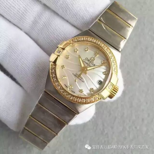 2013年,欧米茄(Omega)推出全新的星座系列双色腕表,全新的星座系列腕表承袭经典、突破创新,将18K红金或黄金细腻点缀于精钢材质之间;表盘提供带有太阳光芒射线的白色珍珠贝母和独具风格的金色珍珠贝母,并镶嵌钻石点缀;与此区别于以往星座系列腕表。