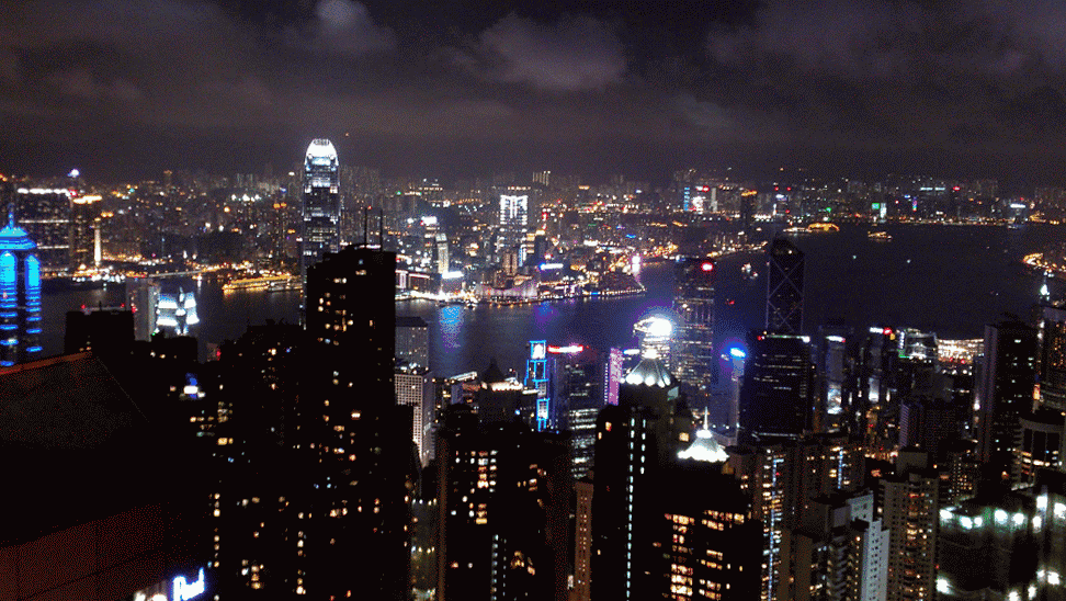 站在海拔373公尺的太平山顶上,九龙半岛、香港岛北岸,将一一展现在你的眼前。当山下无数座大楼都同时亮起灯时,维港的海面、维港的上空都被映照得发紫,璀璨。
