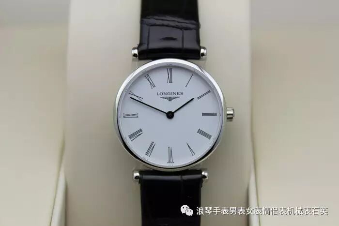 白色优雅表盘,12个黑色罗马刻度镌刻在表盘上显得落落大方;饰以简约两指针,足以对时间进行指示。搭载石英L209机芯,确保腕表的精准走时。同时,这款手表的尺寸为24mm,非常适合现代婉约女性佩戴,腕表的厚度也十分的小巧精致,戴上去显舒适自然。
