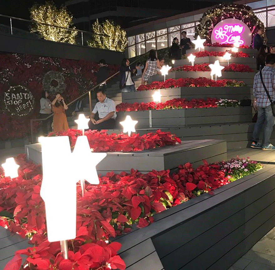 户外露天个广场配搭上哩个圣诞花海