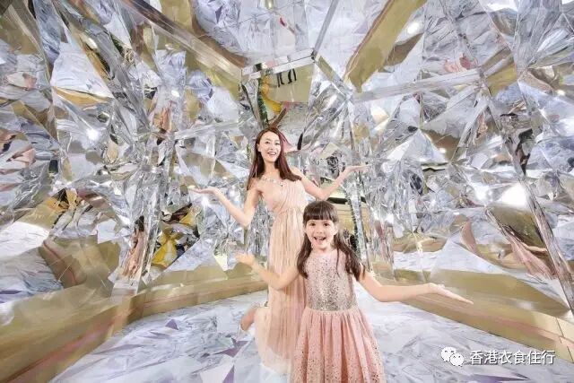 相信每个少女都想要过个白色圣诞,奈何香港不会下雪。为了满足少女们的心愿,有商场把天台布置成飘雪森林,飘雪加上极光投射,超浪漫!地下白茫茫一片,再加上两旁的小树,好像离开香港,去了冰雪奇缘中的场景一般!