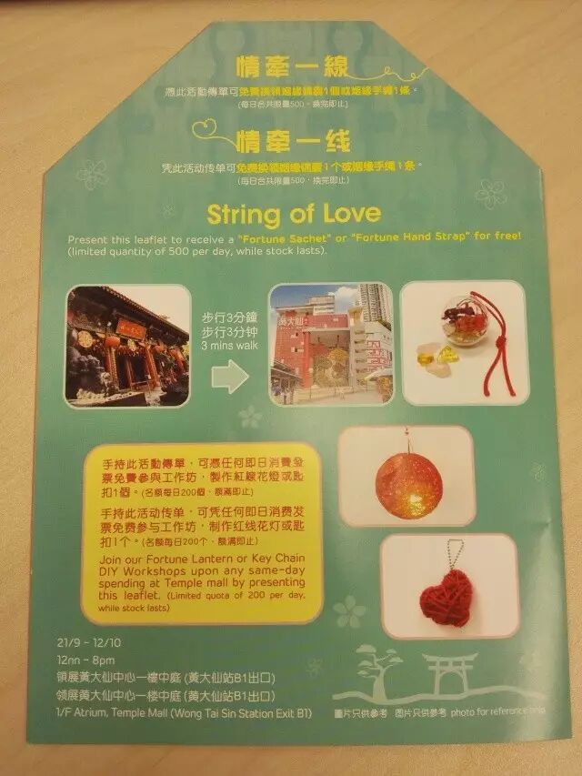 旅行中,我都喜欢“动手”做一些东西。可以是当地美食,也可以是能够带回家的小纪念品。因为这些会让我觉得有自己的独特旅行回忆。中秋国庆期间来这里购物之余,还可以参加手工作坊自己亲手制作红线花灯或者红心匙扣,带着美好的祈愿过个特别的中秋佳节。友情提醒,制作红线花灯和红心匙扣都是10月15日前哦。