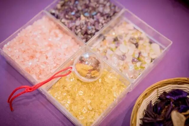 这一次制作的,是一个用黄大仙庙红绳串起的“许愿幸运球”(它有个很美好的别名叫“姻缘锦囊") 。里面可以根据自己的愿望选择放入不不同颜色的水晶,辅以彩色的花干,让整个小球有很好闻的味道。