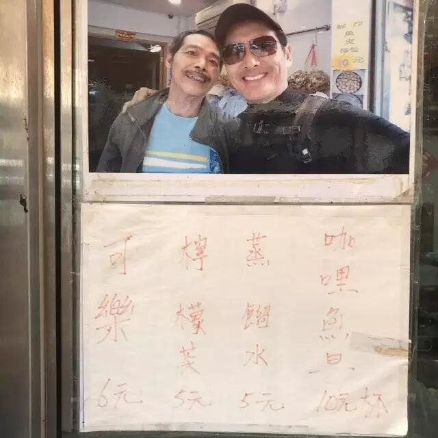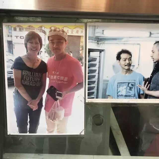 (店门口老板和周润发,王祖蓝来店买鱼丸的合影)