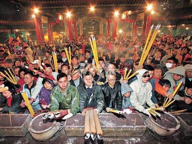 说到黄大仙,很多广东人第一个会想到的,就是每年新闻里说的“头柱香”。也就是信徒赶早到寺庙、道观或神祠,争取烧第一炉香,以示虔诚。因为有说新年的第一炉香功德最大,而黄大仙作为香港最著名的庙宇之一,也是 大家抢着上头柱香的最佳圣地。画风是这样的:
