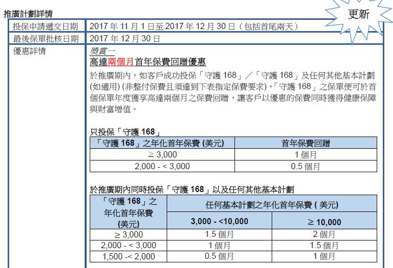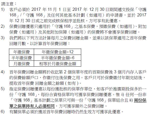 于2017年10月10日至11月30日(「推广期」),客户成功投保下列指定危疾保险计划,可享受保费回赠优惠: