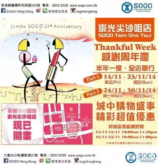 由于铜锣湾点和尖沙咀店的营业时间不尽相同,具体的营业来看看这两个店的海报吧: