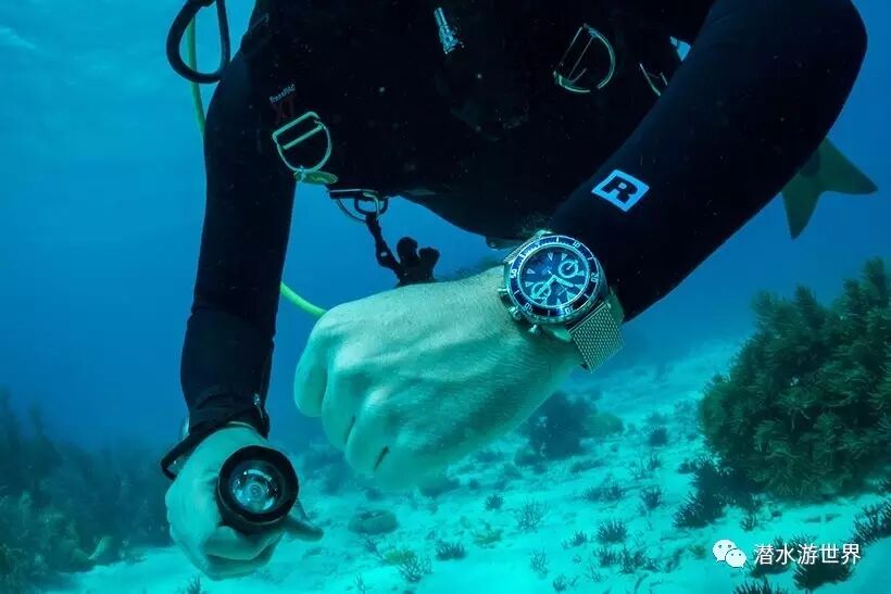 机械潜水表的指针、表圈、刻度上有荧光材质,方便在水下读。