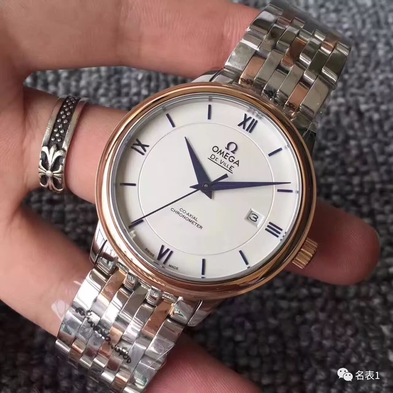 欧米茄蝶飞系列男士机械腕表 搭载8500机芯 蓝宝石玻璃镜面 意大利小牛皮表带 双日期设计实拍, 经典复刻 重新演绎!
