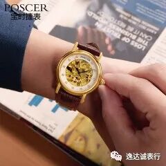 宝时捷POSCER 男士手表时尚商务男表 防水皮带镂空全自动机械表6040