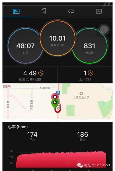 10k节奏跑,速度稳中加快,可以看出GPS有了一些误差,但是心率还是相符合的。