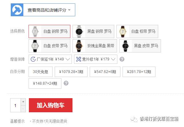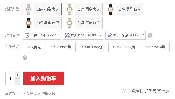 第二条呢,小编我也是没有找到原文的规定,但是随便抽取了几个表打开来看会发现,大部分的表都是“不支持七天内无理由退换 ”的,只有一小部分才是支持!而且还写得很小,在购物栏里面!