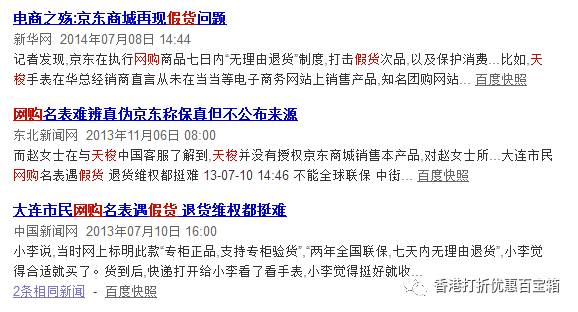 京东的新闻稍稍多一点,大概是因为京东从成立开始就以:“保证销售的都是正品行货”为旗号,多以大多数的人想要买稍微名贵一点的东西的时候基本就会上京东,所以他们家的东西销售量都是比较好的,自然出事的几率也稍高。网上很多在京东买了名表却发现假货的!