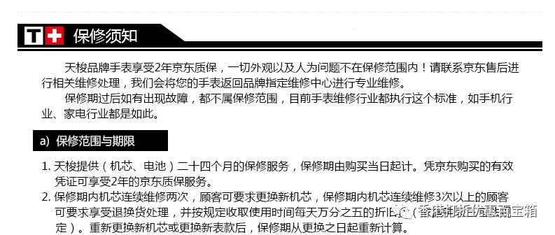 1、在京东所有商品的售后服务的“服务承诺”条款中,京东承诺,所售商品均为正品行货,凭质保证书及京东商城发票,可享受全国联保服务。但该条款后面有四个字的附加说明:“钟表除外”。(这条小编找了很久都没有找到,所以无法确认真假!知道的告诉下小编怎么确认吧!)