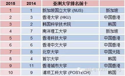 在排名前十的大学中,韩国仅次于新加坡、香港,位居第三,韩国科学技术院,国立首尔大学,浦项科技大学排名分别为第三,第八和第十。