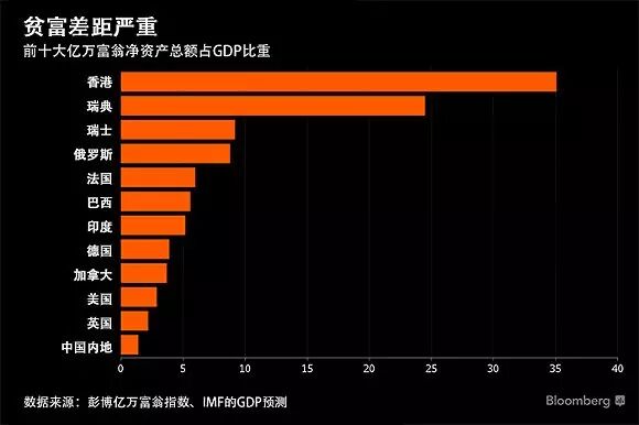 香港720万人口中,大约有96万人生活在贫困线以下,在全球贫富不均排行榜上排在了第12位。从1971年至2011年间,香港的基尼系数上涨了25%,从0.43升至0.537。彭博亿万富翁指数和国际货币基金组织(IMF)对香港本地生产总值(GDP)的预测,香港前十大亿万富翁的净资产总和占其GDP的35%,这是多么可怕的数据。