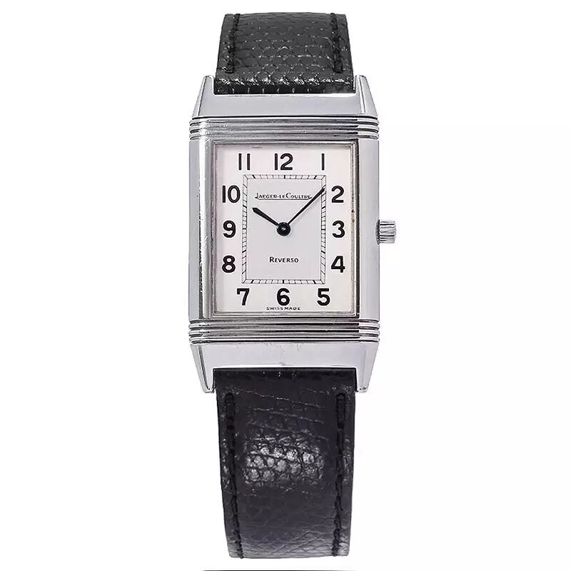 积家 REVERSO系列 手动机械女表:精钢材质长方形,蓝宝石表镜,优雅白色表盘,牛皮表带(非原装)。