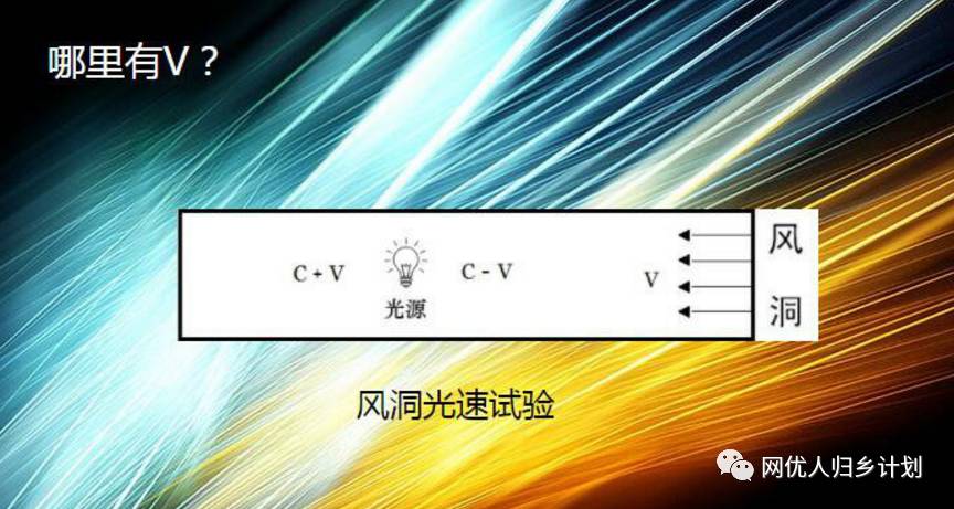 真是这样吗?验证这个说法还要等多少年?根本不必等,马上就能验证,在课中有一个风洞光速试验,试验作出的预言简直骇人听闻:光迎风时速度减慢,顺风时速度加快!如果是这样的话,爱因斯坦相对论中光速不变的理论不就被推翻了吗?