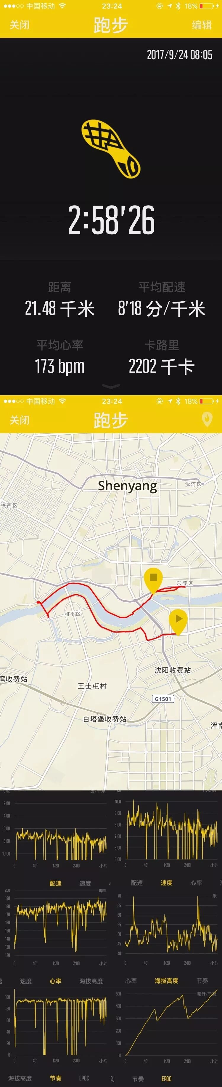 在运动过程中可以记录和跟踪心率和消耗的卡路里。小尾巴测试了几个大家常见的运动项目,记录给大家看一下。下面这个是半程马拉松的记录。
