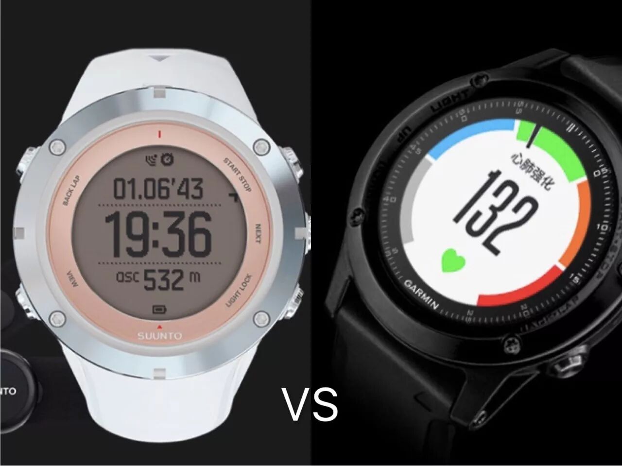 我们今天比对的是Suunto斯巴达系列和Garmin的飞耐时系列,我们通过最优的产品来比对。