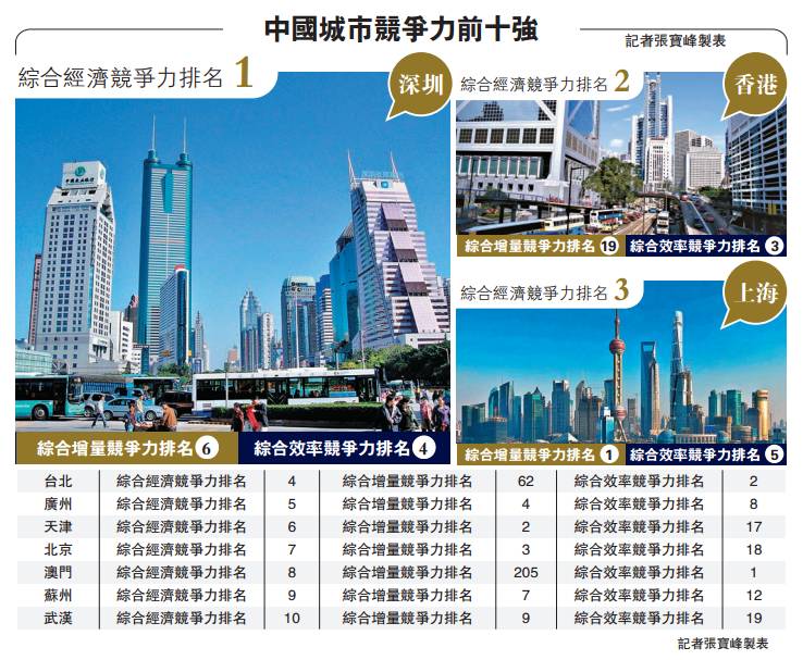 4.中國城市競爭力排行榜,深港滬列三甲,香港在宜居及可持續兩領域拔頭籌。