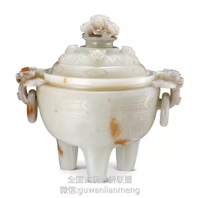 清19世纪 青白釉仿古蝉纹三足盖炉(10-15万)