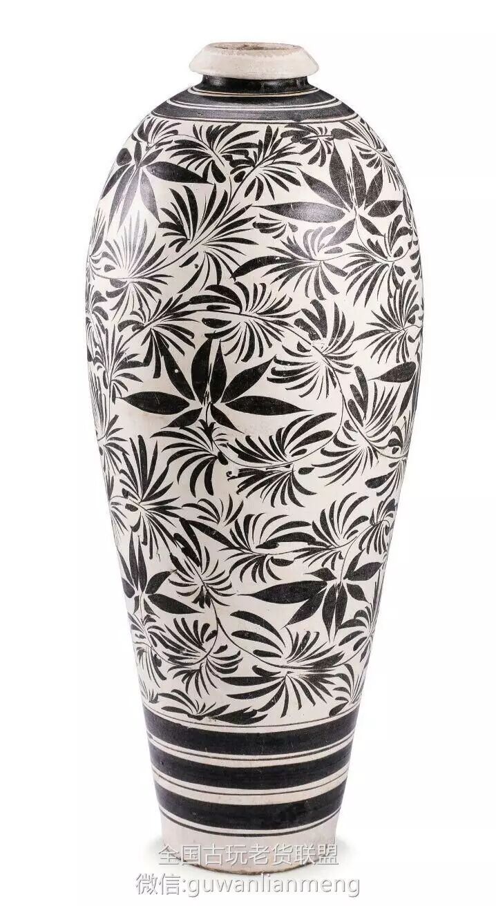宋/金 磁州窑黑地白花彩绘梅瓶(30-40万)