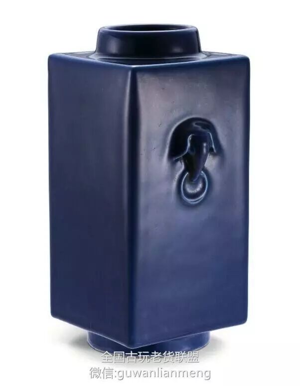 清乾隆 霁蓝釉香耳琮式瓶(8-12万)