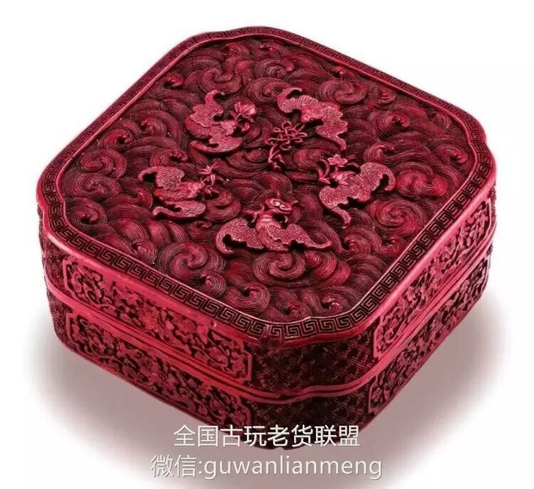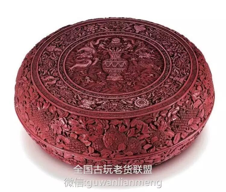 清乾隆 剔红雕漆双龙捧寿图盖盒(35-40万)