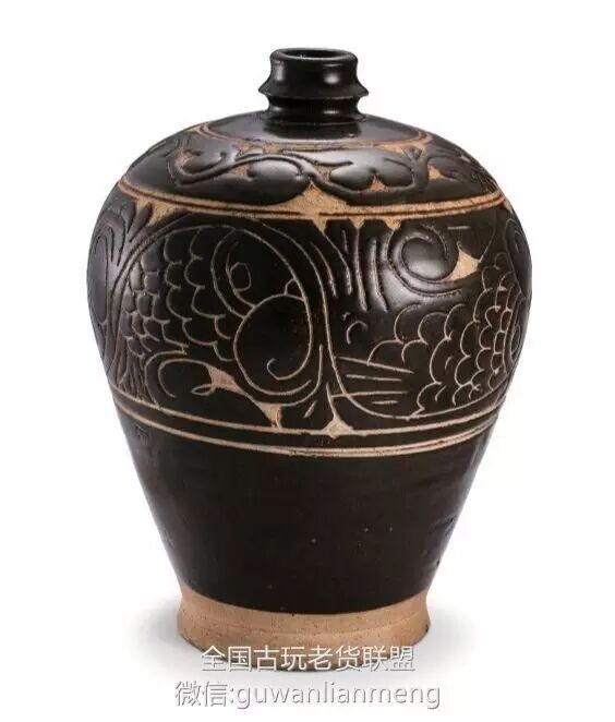 金 磁州窑黑釉剔花鱼纹瓶(2.5-3万)