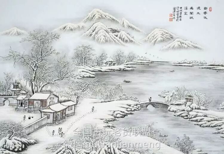 民国 何许人粉彩江上雪迹图插屏(40-60万)
