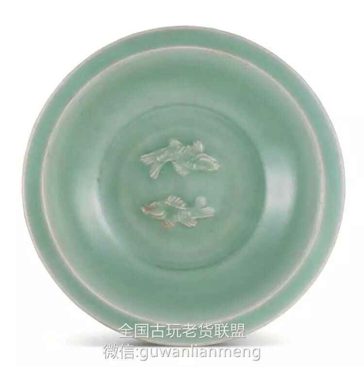 南宋 龙泉青釉双鱼折沿盘(9-12万)