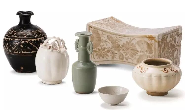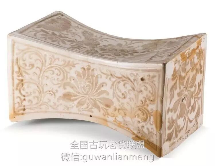 宋 定窑白釉褐彩莲纹枕(15-20万)
